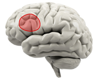El punto rojo pertenece al área de Broca, situado en el lóbulo frontal. Esta zona es específica del lenguaje y su procesa la producción del habla así como el análisis de las palabras.