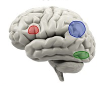 El punto verde señala un área del cerebro que se encuentra en el lóbulo occipital. Dicho lóbulo procesa mayoritariamente la información visual. En la lecto-escritura es fundamental para reconocer la forma de las palabras.